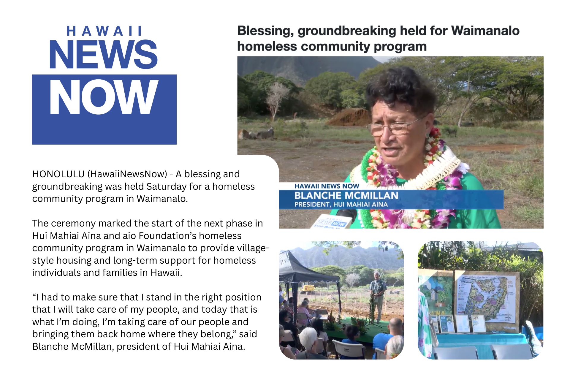 Hui Mahi‘ai ‘Āina (HMA) is a homeless community program that provides village style housing, essential facilities, and long-term support for those facing hard times in Hawai‘i. After 5 years of operation, founder Aunty Blanche McMillan now has over 100 residents at HMA's founding site in Waimanalo.